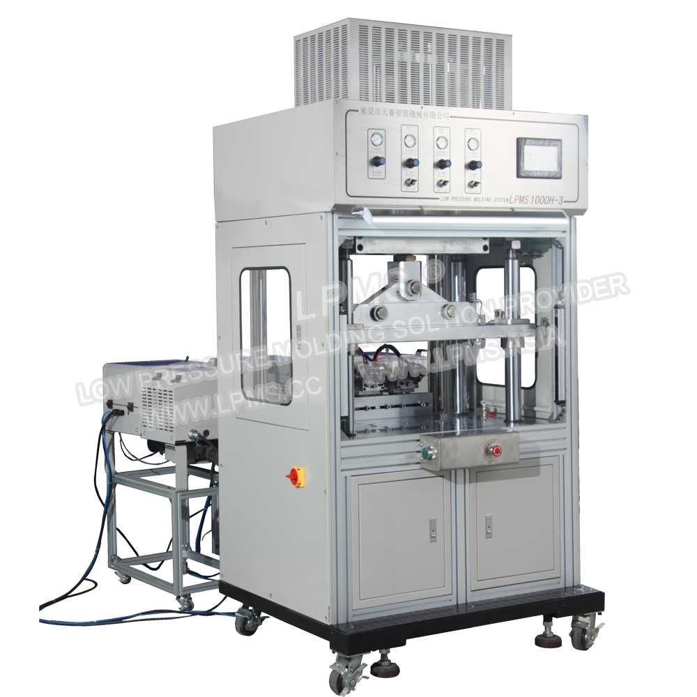 側式熱熔膠低壓注塑機系列的注膠咀位於模具側面,當產品較大時模具只能設計為一模一穴,採用側式注膠可避免在產品正上方注膠而留下進料痕影響產品美觀。適合封裝尺寸較大或外形複雜產品。
